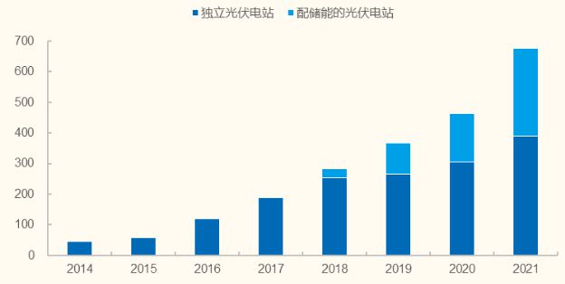 (2)2021年新增地面光伏中儲能滲透率不高于14%,預計未來三年潛在項目滲透率將達到41%左右,此外存量電站配儲需求也在穩(wěn)步增長;