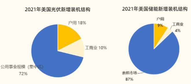 2021年美國光伏裝機量共計23.6GW,其中集中式(>1MW)光伏裝機17GW,占比72%,戶用/工商業(yè)分布式裝機分別占比17.8%/10.2%,美國儲能裝機結(jié)構(gòu)與光伏裝機結(jié)構(gòu)高度相似。