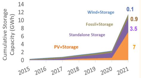 圖:2018年開始申請并網(wǎng)的光伏電站中光伏+儲能的占比顯著增加(GW)