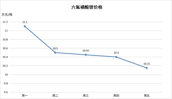 上周,3月27日-3月31日,鋰價(jià)繼續(xù)下跌。其中,電池級(jí)碳酸鋰價(jià)格下探至23.8萬(wàn)元/噸,氫氧化鋰價(jià)格低至33.25萬(wàn)元/噸,六氟磷酸鋰低至10.15萬(wàn)元/噸。