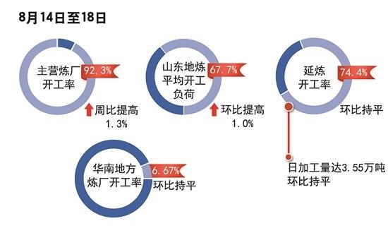 8月14日至18日,正值暑期出行高峰期,汽油需求依舊旺盛,部分海域休漁期結(jié)束,且隨著“金九”旺季臨近,柴油備貨需求亦有提升。