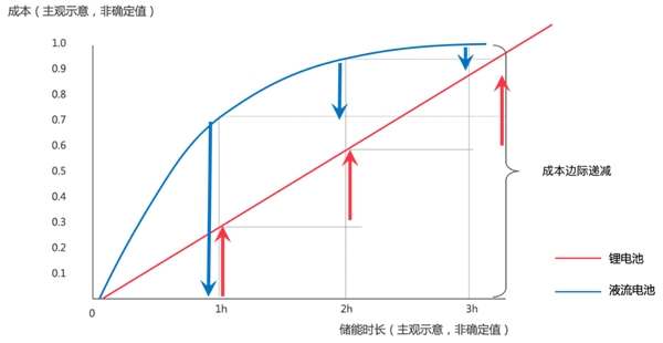 在結(jié)構(gòu)層面,鋰離子電池將功率輸出與能量儲存裝置緊密結(jié)合。如果要增加儲能時長,就要等比例增加電池成本。因此,4小時儲能系統(tǒng)的電池成本相當(dāng)于1小時儲能系統(tǒng)成本的4倍。鋰離子電池在長時儲能領(lǐng)域并不具備經(jīng)濟性。
