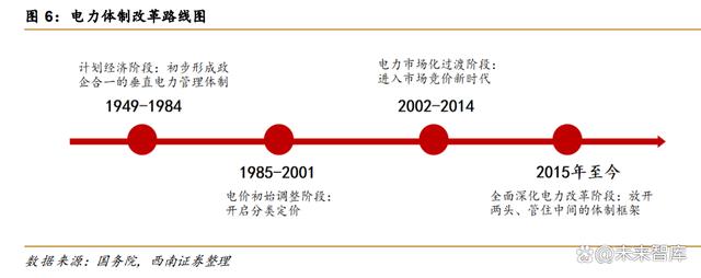 從我國(guó)電價(jià)政策機(jī)制發(fā)展歷程來(lái)看,我國(guó)電價(jià)政策機(jī)制發(fā)展歷程大致可以分成四個(gè)階段: 1)計(jì)劃經(jīng)濟(jì)階段(1949-1984 年):1950 年,我國(guó)成立電力行業(yè)管理局,初步形成以中央 領(lǐng)導(dǎo)為主、地方領(lǐng)導(dǎo)為補(bǔ)充的政企合一的垂直電力管理體制;2)電價(jià)初始調(diào)整階段 (1985-2001 年):1985 年,以國(guó)家經(jīng)濟(jì)委員會(huì)、國(guó)家計(jì)劃委員會(huì)、水利電力部、國(guó)家物價(jià) 局發(fā)布的《關(guān)于鼓勵(lì)集資辦電和實(shí)行多種電價(jià)的暫行規(guī)定》為標(biāo)志,開(kāi)啟分類(lèi)定價(jià);3)電力 市場(chǎng)化過(guò)渡階段(2002-2014 年):2002 年國(guó)務(wù)院發(fā)布《電力體制改革方案》,標(biāo)志著我國(guó) 電力行業(yè)定價(jià)正式告別政府定價(jià),進(jìn)入市場(chǎng)競(jìng)價(jià)新時(shí)代。4)全面深化電力改革階段(2015 年至今):2015 年,中共中央國(guó)務(wù)院下發(fā)《關(guān)于進(jìn)一步深化電力體制改革的若干意見(jiàn)》(中發(fā) [2015]9 號(hào)),確定了“三放開(kāi)、一獨(dú)立、三強(qiáng)化"的改革基本路徑以及"放開(kāi)兩頭、管住中間" 的體制框架。 新一輪電力體制改革加速推進(jìn)。傳統(tǒng)電力系統(tǒng)調(diào)度模式為“源隨荷動(dòng)”,根據(jù)用電側(cè)來(lái) 調(diào)整電源側(cè)的發(fā)電量,新型電力系統(tǒng)下電源側(cè)發(fā)電量和負(fù)荷側(cè)用電量均不可控,加大了電力 調(diào)度難度。而目前電網(wǎng)調(diào)度方式主要是面向常規(guī)電源為主的計(jì)劃調(diào)度機(jī)制,電力體制改革隨 之深化。