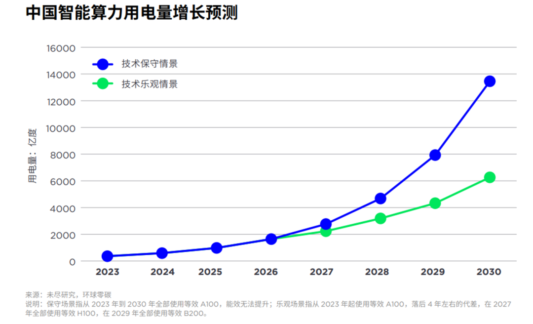 2030年中國(guó)智算年用電最高1.3萬(wàn)億度