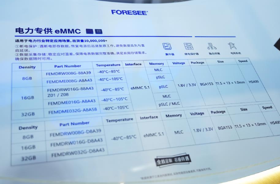 在電力行業(yè),設備需要采集和處理數(shù)據(jù),同時還需要記錄和存儲異常信息、警告信息等,因此,在電力設備中,必須有一種可靠、高效的存儲方式來確保數(shù)據(jù)的安全性和完整性。為此,江波龍?zhí)貏e設計了 FORESEE 電力專用 eMMC,其產(chǎn)品規(guī)格、測試標準、固件功能均為電力領域量身打造,也是PTM商業(yè)模式在電力行業(yè)的實踐。該產(chǎn)品系列提供 8GB 至 32GB 的容量選擇,并支持-40℃~85℃以及-40℃~105℃兩種寬溫工作環(huán)境。經(jīng)過嚴格的高低溫測試和多項可靠性驗證,產(chǎn)品均展現(xiàn)出卓越的抗沖擊能力,確保在極端溫差下也能穩(wěn)定運行,滿足電力行業(yè)在惡劣環(huán)境下的應用需求。