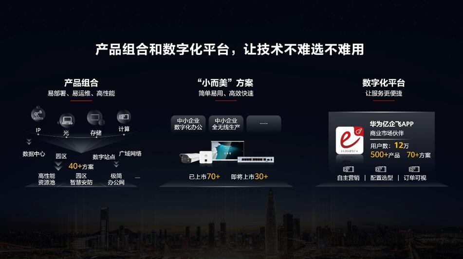 同時,我們還打造了一站式的數(shù)字化平臺,如華為億企飛APP。客戶和伙伴們可以通過這個平臺,獲取豐富的產(chǎn)品庫、方案庫、案例庫等資源,以便更好地使用數(shù)字化產(chǎn)品和方案。