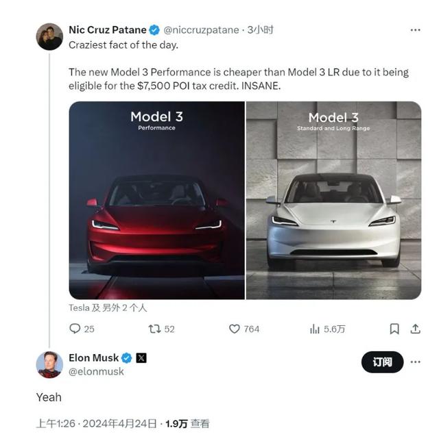 雖然美國網(wǎng)友一開始的關(guān)注焦點還是這輛車的續(xù)航里程,但很快就被價格引發(fā)的熱議蓋過了——美國網(wǎng)友驚奇的發(fā)現(xiàn),由于美國現(xiàn)行的電動車補貼政策,新的高性能版竟然要比標準長續(xù)航版還要便宜!