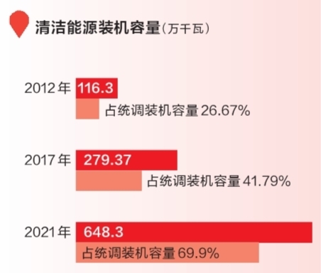 從2012年到2021年,海南全省清潔能源裝機(jī)容量從116.3萬千瓦增長(zhǎng)到648.3萬千瓦,裝機(jī)占比從26.67%增長(zhǎng)到69.9%。海南電網(wǎng)消納清潔能源從27.42億千瓦時(shí)增長(zhǎng)到165.4億千瓦時(shí);綜合線損率從7.99%下降到5.36%。一組組數(shù)據(jù)的對(duì)比,揭示了海南電網(wǎng)公司推動(dòng)能源綠色低碳轉(zhuǎn)型的深刻變化。
