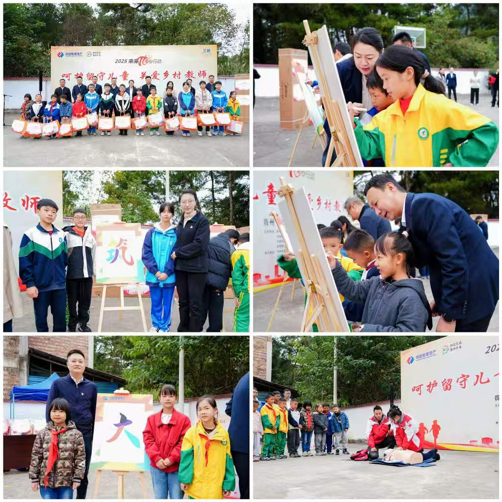 本次活動從“安全守護、物資幫扶、陣地升級”三個維度為石板村提供全方位關(guān)愛。貴州省紅十字會資深老師受邀為留守兒童開展“防溺水與應(yīng)急包扎”安全教育課,通過理論講解與實際操作,幫助孩子們掌握實用的安全防護技能。在互動環(huán)節(jié),領(lǐng)導(dǎo)和孩子們共同參與“大國基建 為民筑城”主題背景板涂色創(chuàng)作,用色彩傳遞守護與溫暖,并在協(xié)作中理解公益內(nèi)涵。