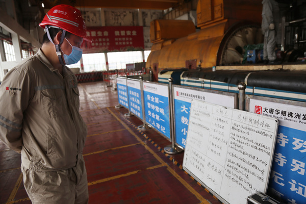中國電力網(wǎng)訊 6月5日,大唐華銀株洲發(fā)電有限公司黨委副書記、副總經(jīng)理肖重德到3號(hào)機(jī)組A級(jí)檢修現(xiàn)場(chǎng)檢查工作。
