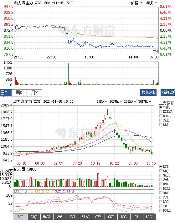 煤炭系期貨集體重挫,截止收盤,動力煤跌7.20%,報809.6元,創(chuàng)8月底以來新低。