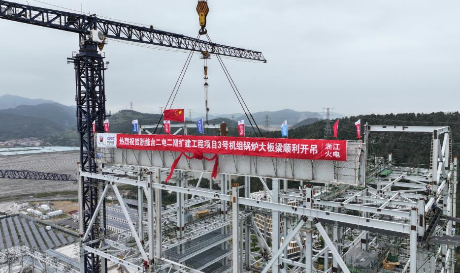 10月25日,中國能建浙江火電承建的臺(tái)二電二期項(xiàng)目3號(hào)機(jī)組鍋爐首根大板梁吊裝就位。