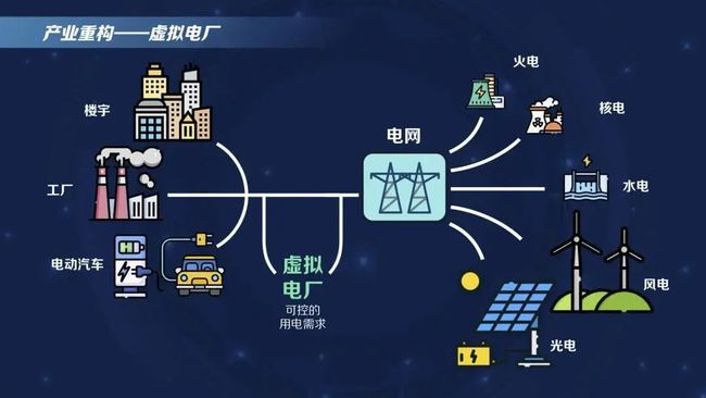 我們把未來發(fā)展中,這部分從調(diào)節(jié)“需”方來適應(yīng)“供”方的波動的功能,叫做虛擬電廠。這是未來發(fā)展里非常值得期待的?,F(xiàn)在我們國家在江蘇等一些省份已經(jīng)有這樣的例子,水泥、有色冶金電解鋁、鋼鐵行業(yè)那三種工業(yè)已經(jīng)能夠形成2000兆瓦的虛擬電廠,相當(dāng)于十來個燃煤火電廠的發(fā)電量的供需調(diào)節(jié)能力。隨著未來的發(fā)展,這部分新業(yè)態(tài)發(fā)揮的作用還會更大。