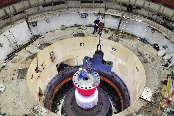 中國電力網(wǎng)訊 10月19日晚上,在中國安能二局承擔(dān)的貴州馬馬崖電站2號機(jī)組A級檢修現(xiàn)場,2號機(jī)組核心部件——最大直徑6.15米,重約160噸的水輪機(jī)主軸和轉(zhuǎn)輪一次起吊成功,這是繼10月12日發(fā)電機(jī)轉(zhuǎn)子吊出后又一重大節(jié)點,這標(biāo)志著電站2號機(jī)組A級檢修工作的拆機(jī)階段順利完成,為機(jī)組下一步進(jìn)入全面的檢修打下了堅實的基礎(chǔ)。