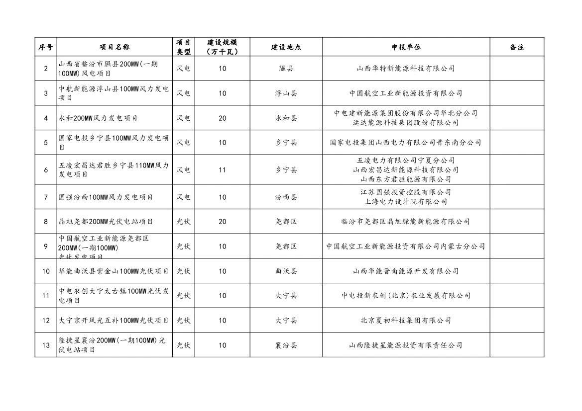 附件:山西省2023年風(fēng)電、光伏發(fā)電保障性并網(wǎng)項(xiàng)目清單