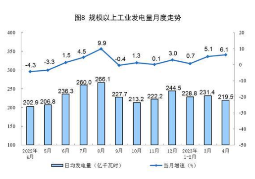 國家統(tǒng)計(jì)局?jǐn)?shù)據(jù)顯示,4月份,發(fā)電6584億千瓦時(shí),同比增長6.1%,增速比3月份加快1.0個(gè)百分點(diǎn),日均發(fā)電219.5億千瓦時(shí)。1—4月份,發(fā)電27309億千瓦時(shí),同比增長3.4%。