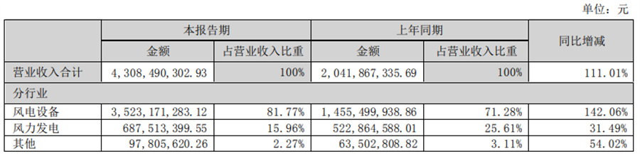 (二)主要產(chǎn)品及用途 報(bào)告期內(nèi),公司主要產(chǎn)品為風(fēng)力發(fā)電用風(fēng)機(jī)塔架(含海上風(fēng)機(jī)塔架及單樁)、錨栓以及新能源發(fā)電 業(yè)務(wù)。風(fēng)力發(fā)電設(shè)備通常包含風(fēng)電機(jī)組、風(fēng)電支撐基礎(chǔ)以及輸電控制系統(tǒng)三大部分,公司所生產(chǎn)風(fēng)機(jī)塔 筒及單樁為風(fēng)電設(shè)備支撐系統(tǒng)的重要組成部分。公司新能源發(fā)電業(yè)務(wù)為風(fēng)力發(fā)電場(chǎng)和光伏電站的運(yùn)營(yíng), 其工作原理是將風(fēng)能、光能轉(zhuǎn)化為電能,通過(guò)升壓變電站升壓后輸送至電網(wǎng),完成發(fā)電銷(xiāo)售。