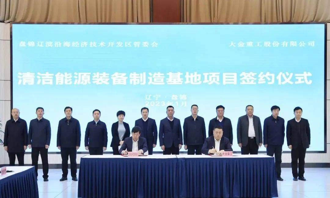 1月7日,大金重工股份有限公司與盤錦市遼濱沿海經(jīng)開區(qū)管委會(huì)舉行清潔能源裝備制造基地項(xiàng)目簽約儀式。
