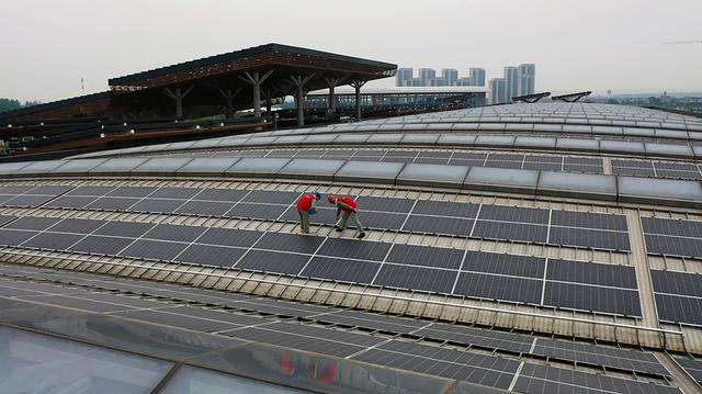 國(guó)網(wǎng)湖北電力員工檢查宜都市會(huì)展中心光伏設(shè)備運(yùn)行情況。