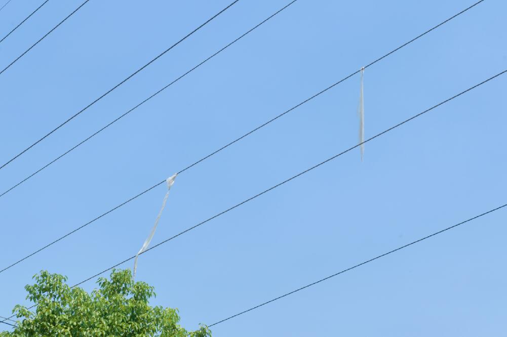 中國(guó)電力網(wǎng)訊 8月14日下午,國(guó)網(wǎng)余姚市供電公司公司輸配電運(yùn)檢中心員工巡視線(xiàn)路時(shí)發(fā)現(xiàn),在陸埠鎮(zhèn)工業(yè)園區(qū)35千伏洲車(chē)3825線(xiàn)23至24號(hào)塔之間的線(xiàn)路上有兩股異物纏繞,一旦連接兩根導(dǎo)線(xiàn),極易引發(fā)線(xiàn)路跳閘,危及電網(wǎng)安全穩(wěn)定運(yùn)行。