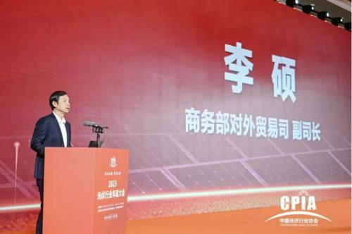李碩副司長在致辭中表示,中國光伏產(chǎn)業(yè)作為代表高技術、高附加值的綠色轉(zhuǎn)型產(chǎn)品,已成為出口的新增長點,并在全球市場占據(jù)領先地位。今年,我國光伏出口呈現(xiàn)出韌性強、布局優(yōu)、潛力大三大特點,尤其對“一帶一路”國家、東盟和非洲的出口增長顯著,且在綠色低碳能源轉(zhuǎn)型的大背景下,全球市場對光伏產(chǎn)品的需求增長依然呈現(xiàn)較好勢頭。同時,光伏出口也面臨著價格下跌、貿(mào)易風險和企業(yè)開拓國際市場困難的三大挑戰(zhàn)。