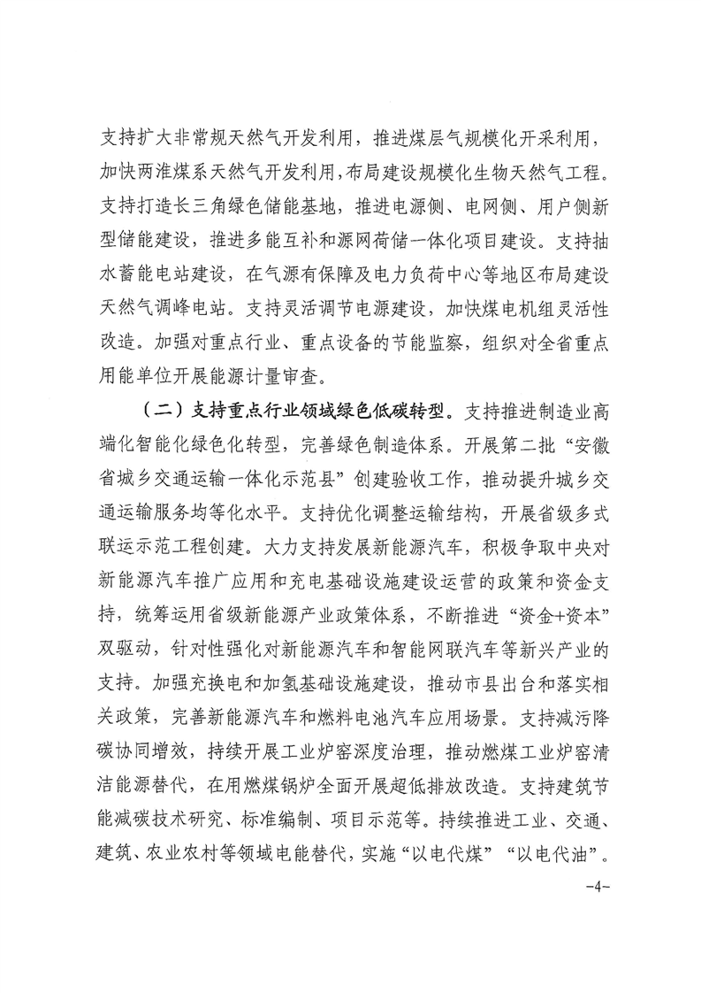 通知指出,支持企業(yè)開展節(jié)能減煤技術改造,重點削減非電力用煤,提高電力用煤比例。大力支持可再生能源高比例應用,支持光伏發(fā)電和風電資源開發(fā),推進生物質能發(fā)電、清潔供暖、熱電聯(lián)產、生物質天然氣等多元化發(fā)展。支持擴大非常規(guī)天然氣開發(fā)利用,推進煤層氣規(guī)?;_采利用,加快兩淮煤系天然氣開發(fā)利用,布局建設規(guī)模化生物天然氣工程。支持打造長三角綠色儲能基地,推進電源側、電網側、用戶側新型儲能建設,推進多能互補和源網荷儲一體化項目建設。支持抽水蓄能電站建設,在氣源有保障及電力負荷中心等地區(qū)布局建設天然氣調峰電站。支持靈活調節(jié)電源建設,加快煤電機組靈活性改造。加強對重點行業(yè)、重點設備的節(jié)能監(jiān)察,組織對全省重點用能單位開展能源計量審查。