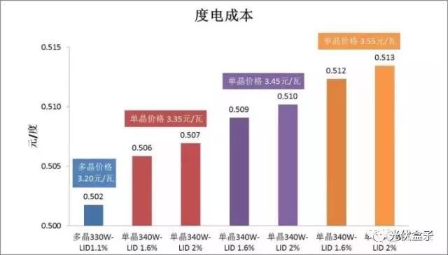 2、如單、多晶系統(tǒng)度電成本持平,單晶組件每瓦價格比多晶組件的溢價不能超過0.02元/瓦,否則單晶系統(tǒng)的度電成本會高出多晶電站,太陽能電站的投資回報率也會相應降低。