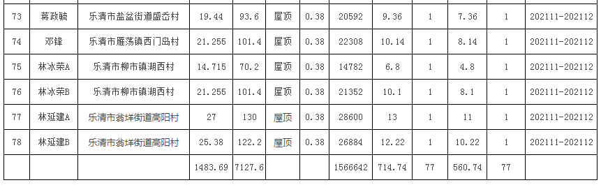 樂(lè)清市2021年第二十三批居民家庭屋頂分布式光伏發(fā)電項(xiàng)目表
