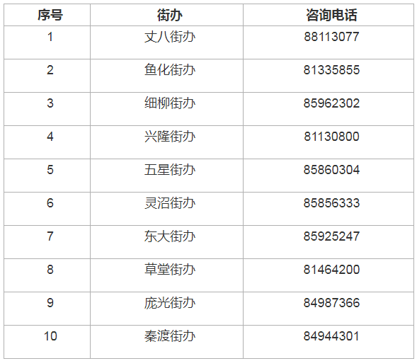 2、各街辦受理電話: