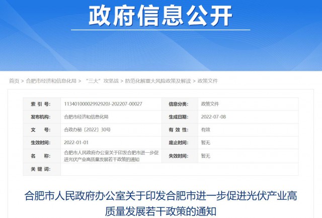 合肥市進(jìn)一步促進(jìn)光伏產(chǎn)業(yè)高質(zhì)量發(fā)展