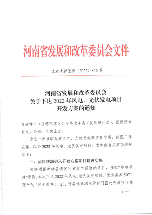 10月20日,河南省發(fā)改委發(fā)布了《關(guān)于下達(dá)2022年風(fēng)電、光伏發(fā)電項(xiàng)目開發(fā)方案》的通知。文件顯示,河南省本次下達(dá)2022年風(fēng)電、光伏發(fā)電項(xiàng)目開發(fā)方案共507.1萬千瓦。其中集中式光伏35萬千瓦,分布式光伏16.102萬千瓦;風(fēng)電456萬千瓦。其中儲(chǔ)能配置要求按照20%~55%、時(shí)長2~4小時(shí)不等。