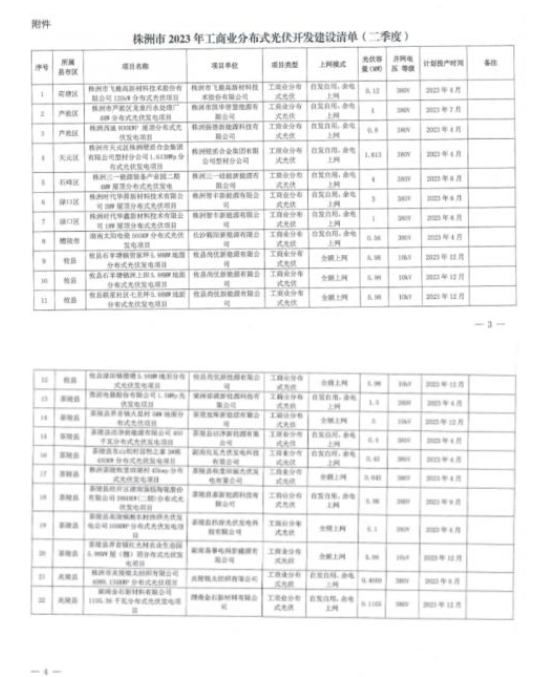 4月18日,株洲市發(fā)改委發(fā)布關于《株洲市2023年工商業(yè)分布式光伏開發(fā)建設清單(二季度)》的通知。株洲市發(fā)改委組織對轄區(qū)內工商業(yè)分布式光伏開發(fā)建設進行了摸排,結合企業(yè)申報情況,形成了株洲市2023年工商業(yè)分布式光伏開發(fā)建設清單(二季度)(見附件)。各縣(市)區(qū)要加強項目指導、監(jiān)督和管理,確保項目按時建成并網。對于逾期6個月仍未并網的項目,將調出建設清單。