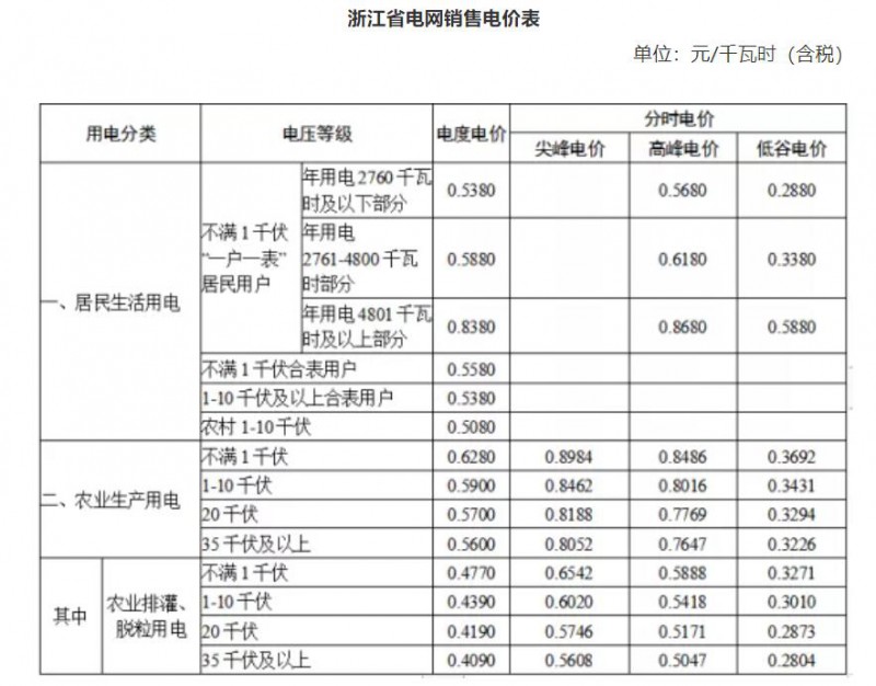 備注:1.居民生活用電,含國家重大水利工程建設(shè)基金0.196875分錢、大中型水庫移民后期扶持資金0.62分錢、可再生能源電價附加0.1分錢。2.農(nóng)業(yè)生產(chǎn)用電,含國家重大水利工程建設(shè)基金0.196875分錢。3.居民生活用電合表分類包括:居民合表及執(zhí)行居民電價的非居民用戶。