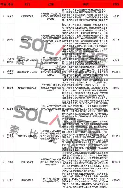 那么,10月份的光伏行業(yè)又有哪些政策值得關(guān)注呢?下面來看索比光伏網(wǎng)的梳理。