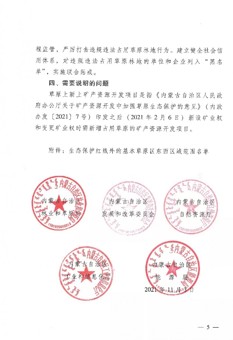 近日,內(nèi)蒙古自治區(qū)林業(yè)和草原局,內(nèi)蒙古自治區(qū)發(fā)展和改革委員會,內(nèi)蒙古自治區(qū)自然資源廳,內(nèi)蒙古自治區(qū)工業(yè)和信息化廳,內(nèi)蒙古自治區(qū)能源局聯(lián)合發(fā)布了《關(guān)于實行征占用草原林地分區(qū)用途管控的通知》,把草原林地保護更加精準(zhǔn)聚焦到生態(tài)系統(tǒng)核心區(qū)域。文件顯示,內(nèi)蒙古將實行征占用草原林地分區(qū)用途管控。