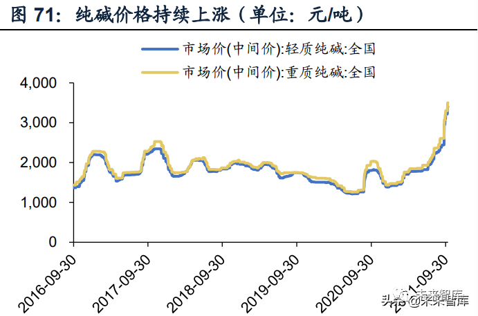 (2)短期景氣度:光伏玻璃供過于求,純堿及天然氣成本上行壓力難以向下順漲,盈利持續(xù)壓縮。信義光能、福萊特等新增產(chǎn)線陸續(xù)達產(chǎn),部分在建產(chǎn)線也已具備點火條件,后續(xù)供給有望增加,但由于硅料帶動主產(chǎn)業(yè)鏈漲價,組件對光伏玻璃的需求支撐不足,庫存或呈增加趨勢,同時光伏玻璃行業(yè)又面臨純堿及天然氣價格快速上漲的成本壓力,根據(jù)卓創(chuàng)資訊,2021年7月,國內(nèi)3.2mm光伏玻璃原片成本價格約16.22元/平,行業(yè)平均毛利率為1.87%,8月以來純堿及天然氣價格連續(xù)上漲,光伏玻璃成本進一步上行,恐將擊穿部分二三線廠商成本線,利潤持續(xù)承壓。