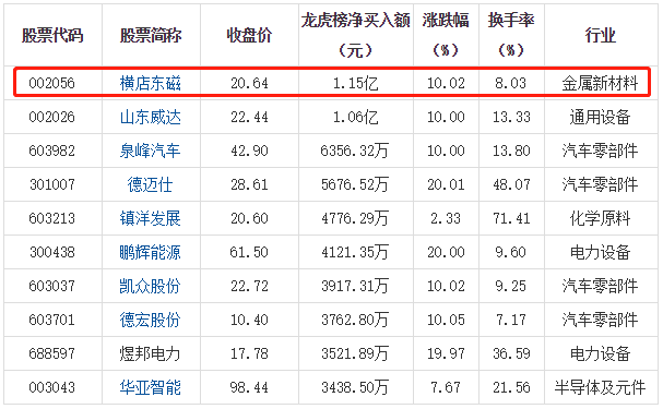 橫店?yáng)|磁入選龍虎榜,當(dāng)日凈買(mǎi)入額達(dá)到1.15億