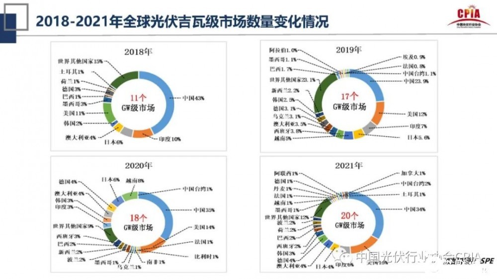 王勃華還指出,根據(jù)統(tǒng)計,2018年-2021年全球光伏吉瓦級市場數(shù)量達20個,根據(jù)預測,2022年將達到26個。王勃華表示,光伏吉瓦級市場的增加,增強了我們在國際貿易中抗沖擊能力和抗打擊能力。