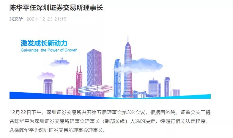 同時,深交所官網(wǎng)上的領導班子介紹信息已更新。官網(wǎng)顯示,陳華平,男,漢族,1968年12月出生,法學學士,中共黨員?,F(xiàn)任深圳證券交易所黨委書記、理事長。