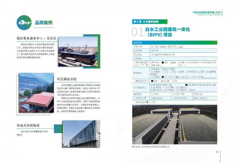 《案例集》分析和總結(jié)我國(guó)光電建筑應(yīng)用現(xiàn)狀、國(guó)內(nèi)外發(fā)展趨勢(shì)、技術(shù)要點(diǎn)等內(nèi)容,為行業(yè)發(fā)展提供基礎(chǔ)數(shù)據(jù)。經(jīng)過(guò)案例篩選,共收錄了105項(xiàng)光電建筑典型案例,涵蓋了我國(guó)工業(yè)建筑、公共建筑、辦公建筑、商業(yè)建筑、居住建筑及其他建筑類(lèi)型光伏應(yīng)用,為光伏在建筑上大規(guī)模應(yīng)用提供了依據(jù)和參考價(jià)值。