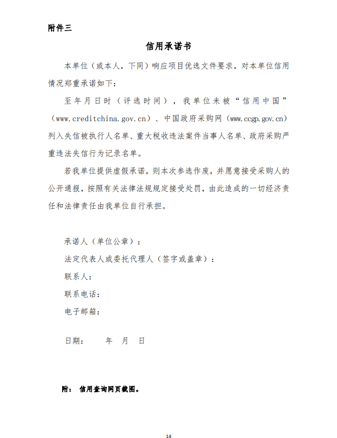 6、參與磋商的企業(yè)未被列入“信用中國(guó)”網(wǎng)站(www.creditchina.gov.cn)記錄失信被執(zhí)行人或“重大稅收違法案件當(dāng)事人名單或企業(yè)經(jīng)營(yíng)異常名錄”記錄名單;不處于中國(guó)政府采購(gòu)網(wǎng)(www.ccgp.gov.cn)政府采購(gòu)嚴(yán)重違法失信行為信息記錄”中的禁止參加政府采購(gòu)活動(dòng)期間;(詳見(jiàn)附件,以上資料查詢時(shí)間以本項(xiàng)目磋商優(yōu)選文件發(fā)布至截止時(shí)間前為準(zhǔn),如相關(guān)失信記錄已失效,參與企業(yè)需提供相關(guān)證明資料)。