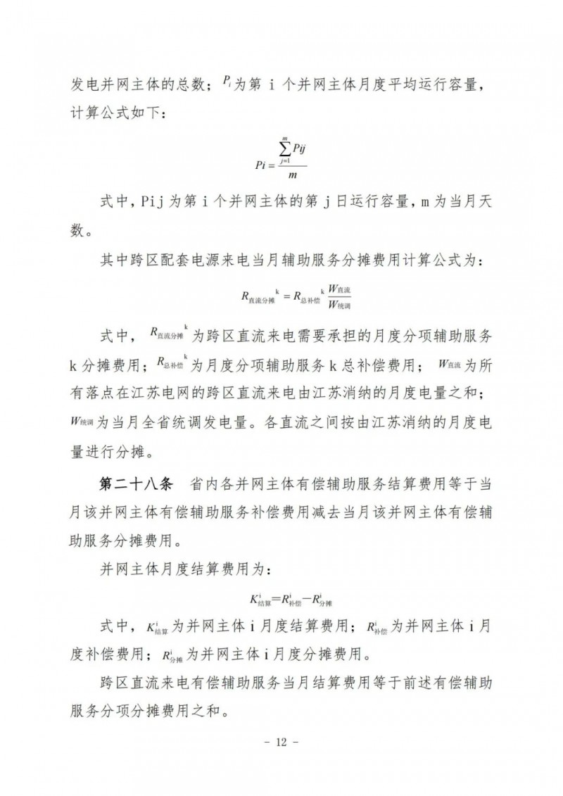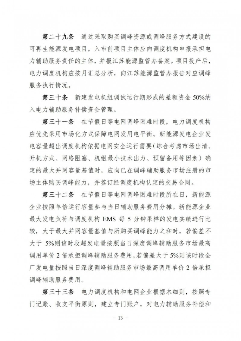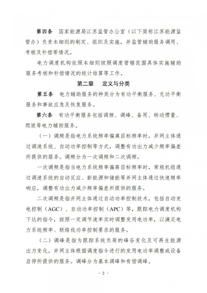 江蘇電力輔助服務管理實施細則(征求意見稿)