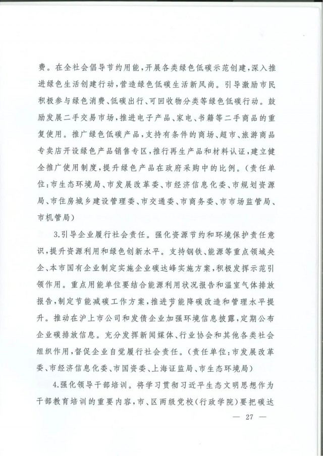 近日,上海市人民政府辦公廳印發(fā)了《上海市碳達峰實施方案》?!斗桨浮访鞔_主要目標:到2025年,單位生產(chǎn)總值二氧化碳排放確保完成國家下達指標。到2030年單位生產(chǎn)總值二氧化碳排放比2005年下降70%,確保2030年前實現(xiàn)碳達峰。并計劃組織實施“碳達峰十大行動”,包括能源綠色低碳轉(zhuǎn)型行動、節(jié)能降碳增效行動、工業(yè)/城鄉(xiāng)建設(shè)/交通領(lǐng)域綠色低碳行動、循環(huán)經(jīng)濟助力降碳行動、綠色低碳科技創(chuàng)新行動、碳匯能力鞏固提升行動、綠色低碳全民行動、綠色低碳區(qū)域行動。