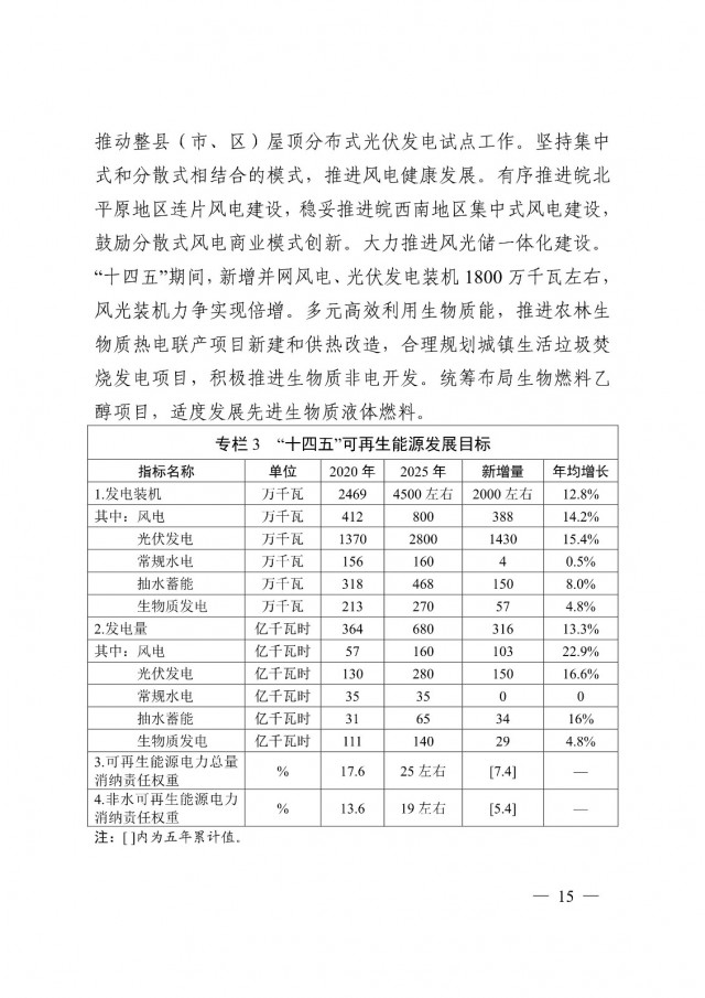 安徽“十四五”能源發(fā)展規(guī)劃:新增風電388萬千瓦、光伏1430萬千瓦