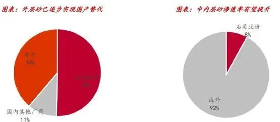 光伏石英坩堝產(chǎn)品端:光伏行業(yè)由于產(chǎn)品精密度程度高、技術(shù)發(fā)展快,對石英坩堝的純度、精度要求日益嚴格。我國的石英制品行業(yè)起步較晚,只有少數(shù)規(guī)?;髽I(yè)的石英坩堝技術(shù)方面達到先進水平。技術(shù)上來看,近幾年我國石英制品行業(yè)的技術(shù)進步較為明顯,尤其是石英坩堝技術(shù)水平與國外企業(yè)產(chǎn)品的差距逐步縮小,在坩堝尺寸、純度、拉晶時間和拉晶次數(shù)等方面均取得顯著進步。此外,國內(nèi)石英坩堝具有一定的成本優(yōu)勢,在質(zhì)量和性能等方面與進口石英坩堝的差距正逐漸縮小。這些都為國產(chǎn)化創(chuàng)造了條件。從細分部件來看,外層砂已基本實現(xiàn)國產(chǎn)替代,中內(nèi)層砂產(chǎn)品和客戶認可度逐步提升。目前石英股份的高純石英砂仍以外層砂為主,我們預計石英股份在中內(nèi)層砂質(zhì)量以及客戶認可度上均有提升,并有望逐步提高中內(nèi)層砂的滲透率。我們預計21年石英股份外層砂份額約50%,中內(nèi)層砂份額約8%。