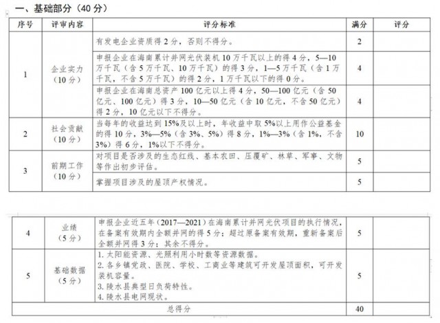 陵水黎族自治縣分布式光伏整縣推進試點項目競爭性優(yōu)選評分標準