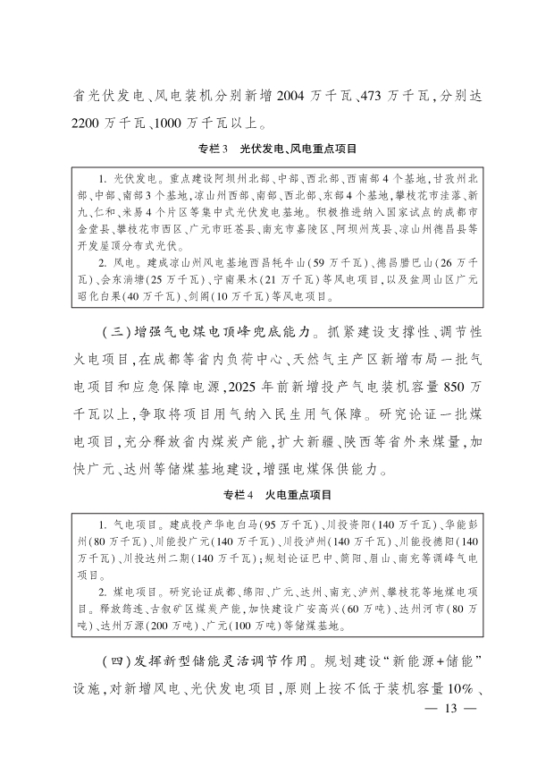 提升風光等新能源補充功能。堅持集中式與分布式并舉,加快建設“ 三州一市” 光伏發(fā)電基地,鼓勵具備條件的地區(qū)利用工業(yè)廠房、商業(yè)樓宇、公共建筑和居住建筑等建設屋頂分布式光伏。有序推進涼山州風電基地建設,支持具備條件的盆周山區(qū)和川西地區(qū)開發(fā)風電。加快建設金沙江、雅礱江、大渡河中上游水風光一體化可再生能源綜合開發(fā)基地,推動風光資源在省內(nèi)更大范圍優(yōu)化利用。因地制宜發(fā)展生物質(zhì)能、地熱發(fā)電。到2025年,全省光伏發(fā)電、風電裝機分別新增2004萬千瓦、473萬千瓦,分別達2200萬千瓦、1000萬千瓦以上。