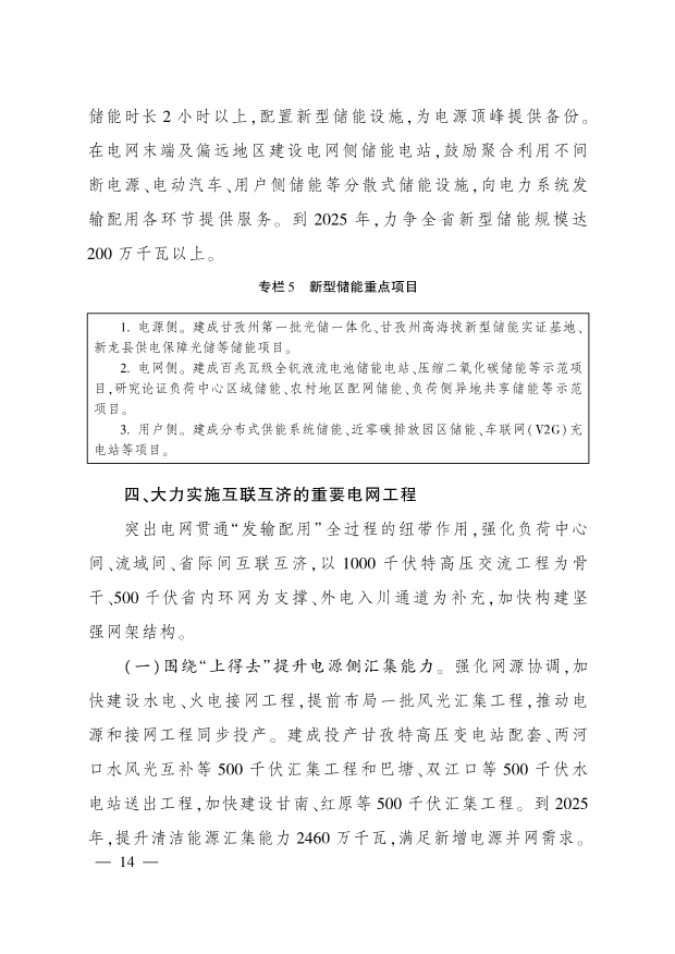 發(fā)揮新型儲能靈活調(diào)節(jié)作用。規(guī)劃建設“新能源+儲能” 設施,對新增風電、光伏發(fā)電項目原則上按不低于裝機容量10% 、儲能時長2小時以上,配置新型儲能設施,為電源頂峰提供備份。在電網(wǎng)末端及偏遠地區(qū)建設電網(wǎng)側儲能電站,鼓勵聚合利用不間斷電源、電動汽車、用戶側儲能等分散式儲能設施,向電力系統(tǒng)發(fā)輸配用各環(huán)節(jié)提供服務。到2025年,力爭全省新型儲能規(guī)模達200萬千瓦以上。