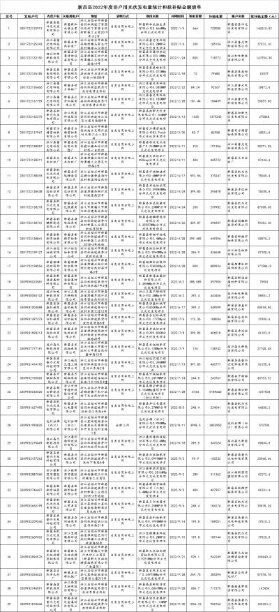 10月25日,浙江新昌縣發(fā)改局發(fā)布《關(guān)于2022年度全縣非戶用光伏發(fā)電量統(tǒng)計(jì)及擬補(bǔ)貼金額的公示》。本次擬補(bǔ)貼項(xiàng)目全部為戶用分布式項(xiàng)目,總計(jì)39個(gè)項(xiàng)目,容量24.14MW,補(bǔ)貼金額總計(jì)456.105萬(wàn)元。