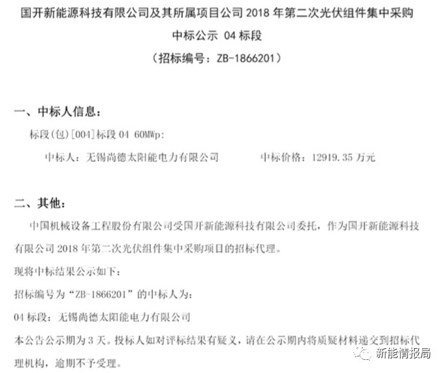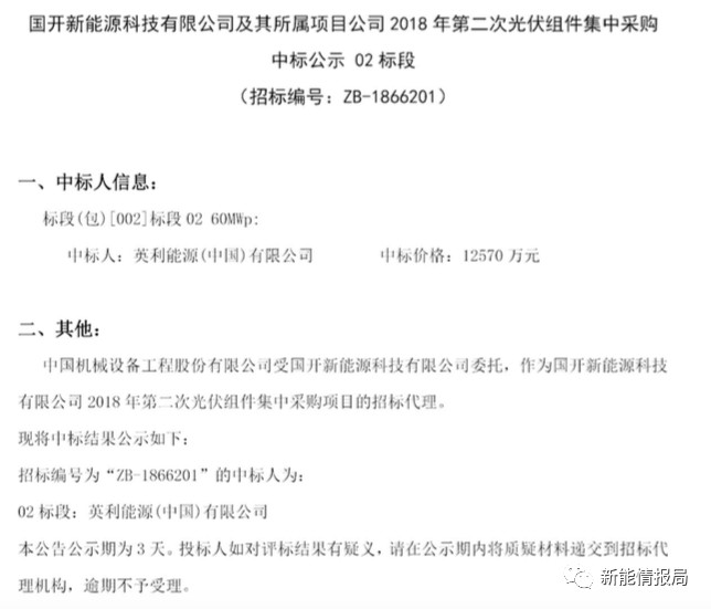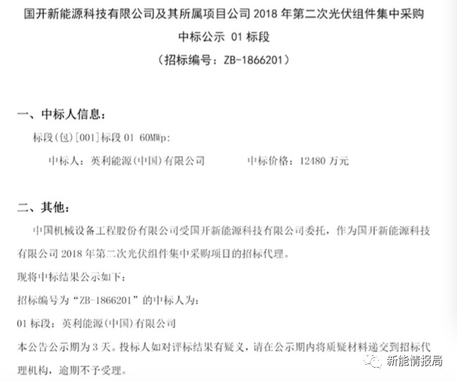 7月28日,國(guó)開(kāi)新能源科技有限公司及其所屬項(xiàng)目公司發(fā)布2018年第二次光伏組件集中采購(gòu)中標(biāo)公示。